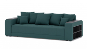 Механизм трансформации - еврокнижка. Наполнение: ПБ + высокоэластичный ППУ. Полка ЛДСП только в одном подлокотнике. Ящик для белья - есть. Чехлы подушек - несъемные, наполнение - крошка ППУ.