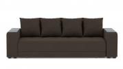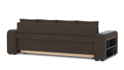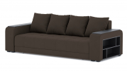 Механизм трансформации - еврокнижка. Наполнение: ПБ + высокоэластичный ППУ. Полка ЛДСП только в одном подлокотнике. Ящик для белья - есть. Чехлы подушек - несъемные, наполнение - крошка ППУ.