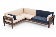 Диван угловой "Домино У" орех, молочный и синий велюр