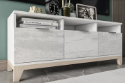 Три открытые ниши, три выдвижных ящика на шариковых направляющих. Ручки - торцевые, металл, 96 мм. Цоколь комода - деревянное основание, высотой 100 мм.