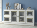 Комод "Квартет 41СтВ", ЛДСП, рамка МДФ, вставка стекло витраж, белый
