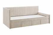 Кровать-тахта: основание кровати - настил; максимальная нагрузка на одно спальное место: не более 100 кг; максимальная нагрузка на ящик: 15 кг; материал чехла - велюр; наполнение - ППУ; рекомендованная высота матраса: 16-23 см.