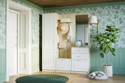 Однодверный шкаф «Оливия» в стиле «прованс». Шкаф оснащен выдвижной штангой для одежды, антресольной и нижней полкой. Ручка пластиковая с растительным орнаментом.
