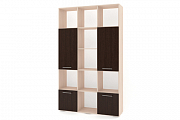 Применение задней стенки из ЛДСП (в ячейках с ящиками и фасадами) позволяет использовать данный стеллаж для зонирования пространства (чтобы предотвратить опрокидывание, необходимо обеспечить крепление стеллажа к стене).
