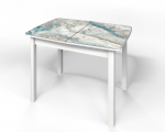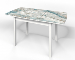 Стол обеденный раздвижной "Флорида" стекло с фотопечатью СМ-7, ЛДСП белый, опора массив прямая белая