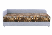 Тахта "София" принт Париж коричневый, рогожка серая, левый угол