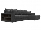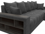 Угловой диван-кровать с декором и полкой "Лига-050" НПБ, BRUT (БРУТ) 16 темно-серый, велюр, 128598